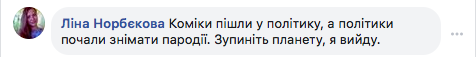"Комики пошли у политику, а политики начали снимать пародии. Остановите планету, я выйду".