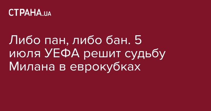 Либо пан, либо бан. 5 июля УЕФА решит судьбу Милана в еврокубках
