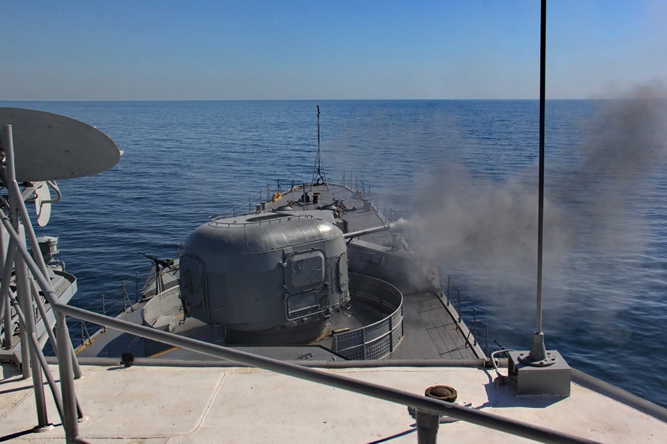 Украинский фрегат "Гетьман Сагайдачный" провел боевые учения в Черном море. Фото