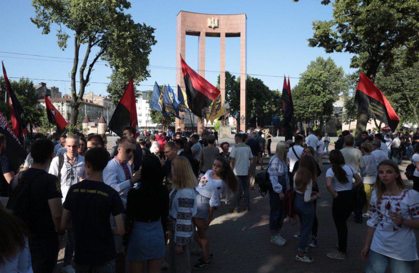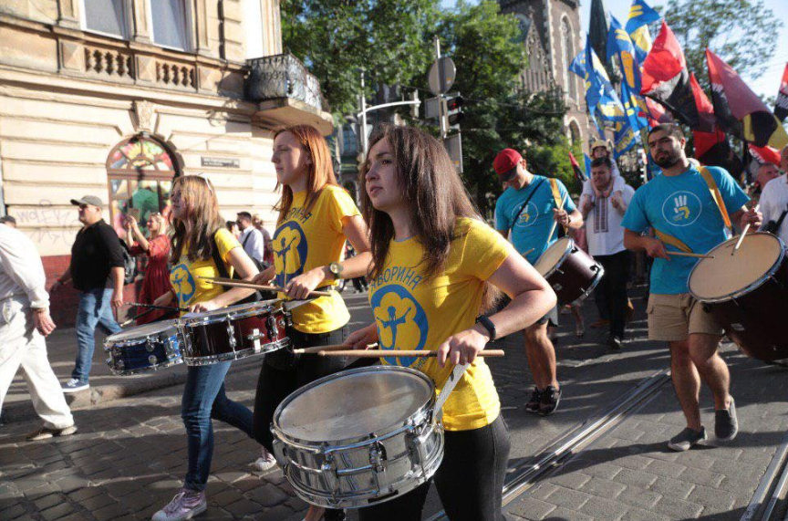 "По улицам Львова прошло шествие, к которому присоединились активисты националистических организаций и рядовые львовяне. Большинство присутствующих по случаю праздника оделись в вышиванки", - говорится в сообщении политсилы.