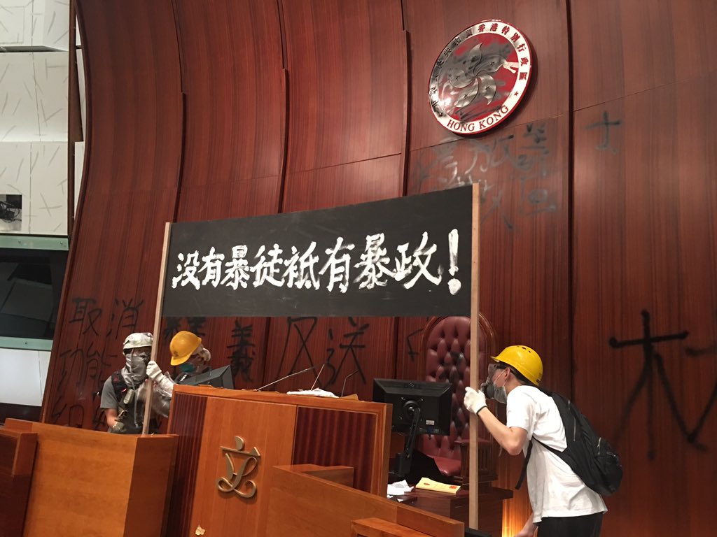В понедельник, 1 июля, в Китае толпа протестующих ворвалась в законодательную палату (парламент) Гонконга после многочасовой акции протеста около здания. Об этом сообщает South China Morning Post.