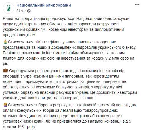 Национальный банк отменил ряд административных ограничений, которые создавали неудобства украинским компаниям, иностранным инвесторам и дипломатическим представительствам. Об этом сообщает пресс-служба НБУ в Facebook.