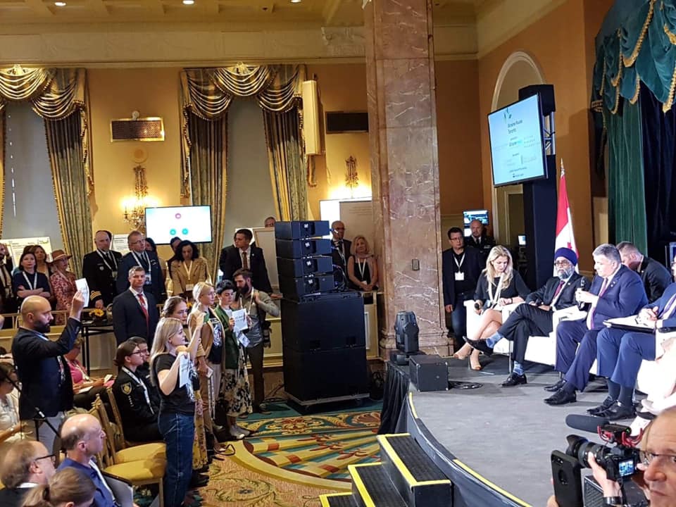 "Устроили Авакову теплый прием в Канаде. Кто заказал Катю Гандзюк?", - написала она. Активисты подняли плакаты "Кто заказал Катю Гандзюк?", когда на сцене мероприятия находился министр внутренних дел Украины Арсен Аваков.