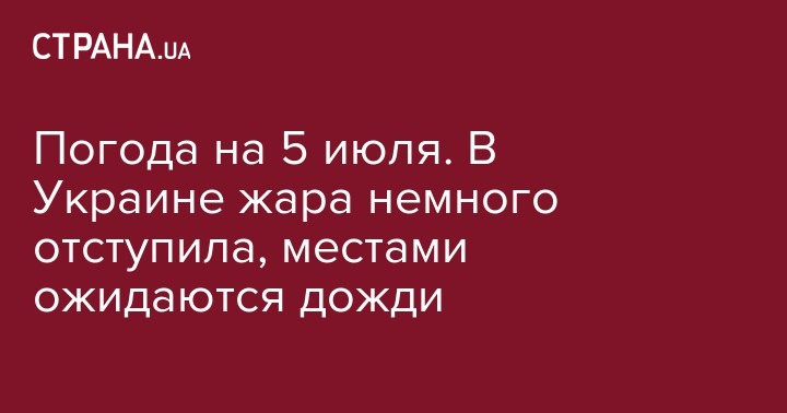 Погода на 5 июля. В Украине жара немного отступила, местами ожидаются дожди