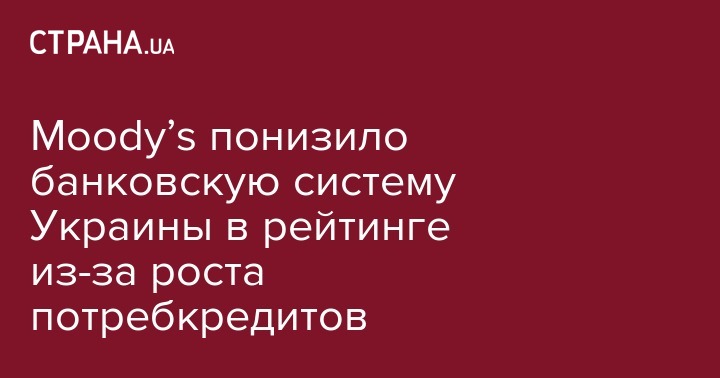 Международное рейтинговое агентство Moody’s Investors Service изменило прогноз банковской системы Украины на "стабильный" с "позитивного", указав на риски, связанные с ростом потребительского кредитования. Об этом сообщает Reuters.