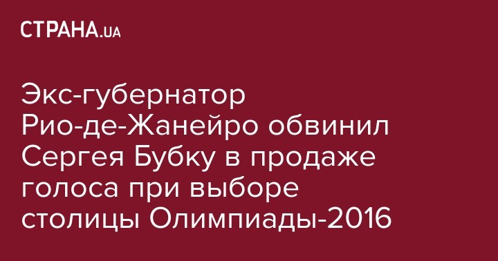 Экс-губернатор Рио-де-Жанейро Сержиу Кабрал, обвиняемый в коррупции, заявил, что подкупил почетных членов МОК, в том числе и главу НОК Украины Сергея Бубку, во время голосования при выборе столицы летних Олимпийских игр-2016.