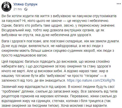 Где стратегический запас, а где бремя или яд. Супрун объяснила разницу в жировых отложениях у людей