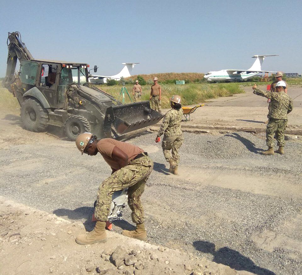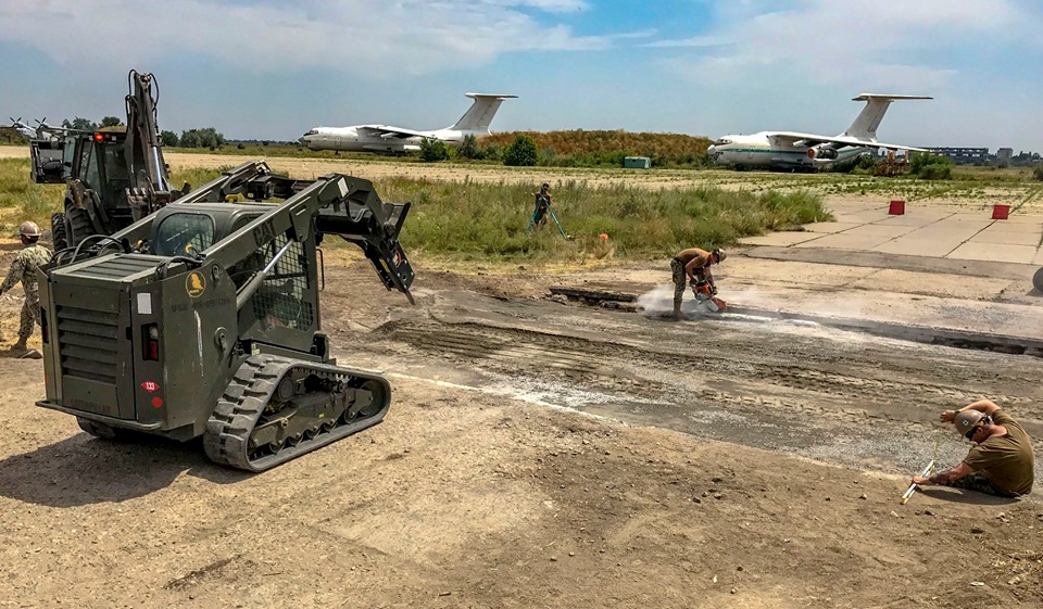 В рамках международных военных учений НАТО Sea Breeze-2019 украинские и американские военные провели 11 июля тактико-специальное занятие "Ремонт взлетно-посадочной полосы" после "бомбового удара".
