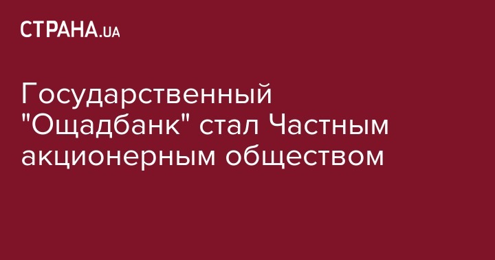 Государственный "Ощадбанк" стал Частным акционерным обществом