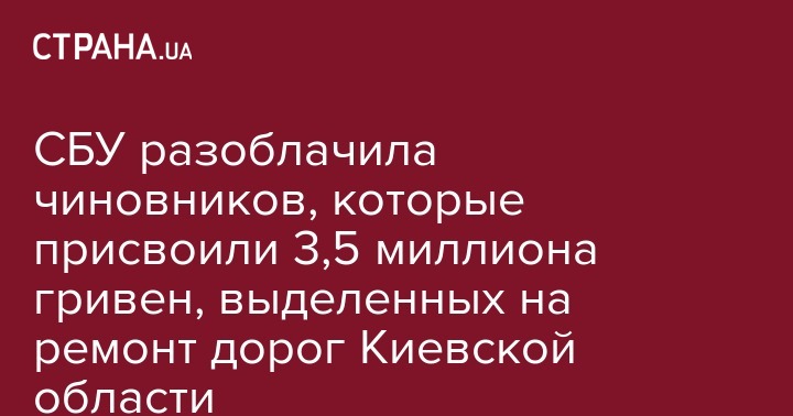 В Киевской области сотрудники СБУ выявили хищение более 3,5 миллиона гривен на ремонте автодорог. Об этом спецслужба сообщает на своей странице в соцсети.