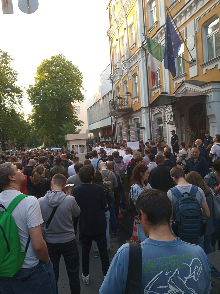 Не согласные с решением итальянского суда по поводу Виталия Маркива, приговоренного к 24 годам заключения, собрались у посольства Италии в Киеве.