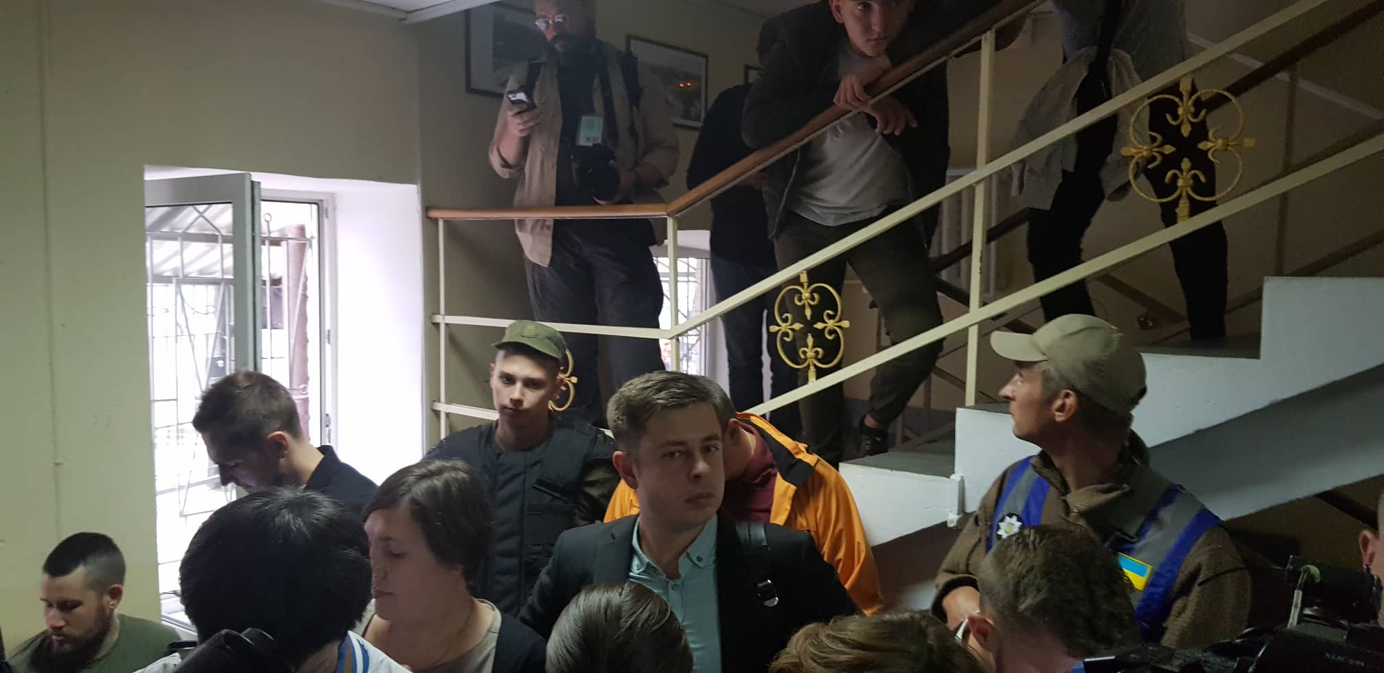 Внутри самого суда ажиотаж - перед дверями в зал под лестницей образовалась толпа журналистов.