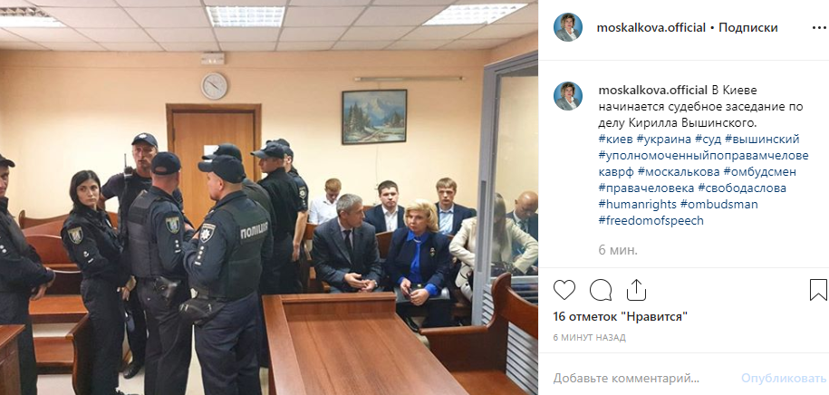 16:39 "Я хотела бы попросить ради исключения выслушать мою позицию. Я обратилась официально к председательствующему судебного состава, чтобы учли позицию, меня как уполномоченного по правам человека, так как имеется законное основание для изменения меры пресечения Вышинскому, не связанное с лишением свободы", - сказала в суде Татьяна Москалькова.