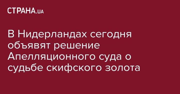 Во вторник, 16 июля, объявят решение Апелляционного суда Амстердама (Нидерланды) относительно возврата "скифского золота" в Украину. Об этом сообщает УНН.