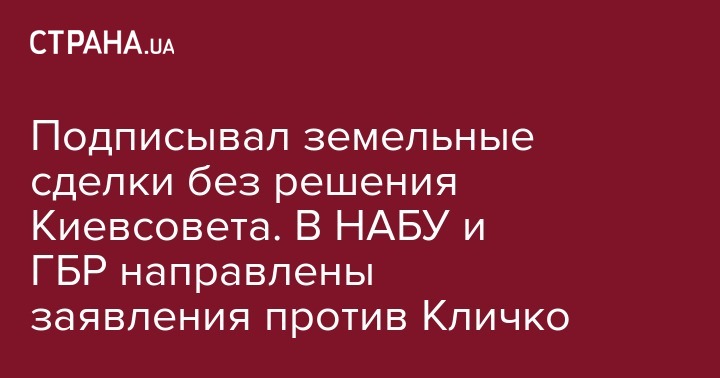 Подписывал земельные сделки без решения Киевсовета. В НАБУ и ГБР направлены заявления против Кличко