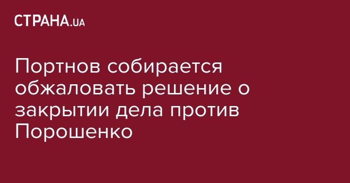 Известный юрист Андрей Портнов заявил о намерении обжаловать решение Генпрокуратуры Украины о закрытии уголовного производства против экс-президента Петра Порошенко, которое ранее было возбуждено по его заявлению. Об этом он сообщил на своей странице в соцсети Facebook.