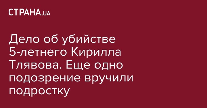 В прокуратуре сообщили о подозрении 16-летнему подростку в причастности к убийству 5-летнего мальчика Кирилла Тлявова в Переяслав-Хмельницком Киевской области. Об этом сообщает пресс-служба областной прокуратуры.