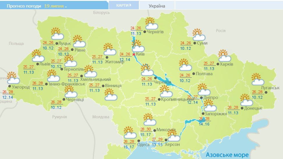 Прогноз погоды на 19 июля. В Украине будет тепло и сухо