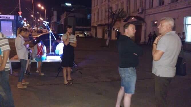 Митинг сторонников Юрченко собрался из-за того, что главный соперник кандидата от "Слуги народа" - секретарь Киевсовета Владимир Прокопив (баллотируется от "Европейской солидарности") объявил, что по экзитполу побеждает именно он. После этого под зданием окружной выборной комиссии Юрченко собрал группу поддержки, сами смонтировали сцену, с которой кандидат "Слуги народа" выступил с речью.