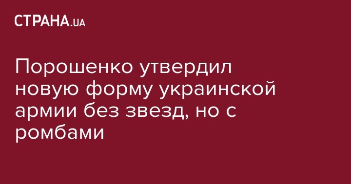 Президент Петр Порошенко дал добро на то, чтобы переодеть ВСУ в форму нового образца. Главное новшество проекта - им заменяются пятиугольные звезды на погонах военнослужащих на четырехугольные звезды (равноугольные ромбы). Об этом на своей странице в Facebook сообщил советник президента Юрий Бирюков, который обнародовал фото проекта униформы и знаков различия Вооруженных сил Украины.
