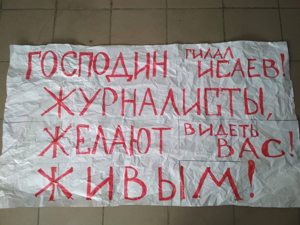 Подозрительные молодые люди пытались встретиться с Гилалом Исаевым несколько дней подряд. Когда это не получилось, они стали угрожать, что не оставят его в покое до конца выборов. Неизвестные даже разместили у штаба плакат с надписью: "Господин Гилал Исаев! Журналисты желают видеть вас! Живым!"