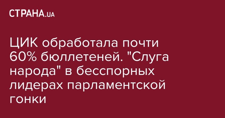ЦИК обработала почти 60% бюллетеней. "Слуга народа" в бесспорных лидерах парламентской гонки