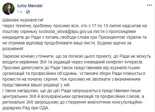 Совет по вопросам свободы слова при Зеленском соберется в начале августа - Мендель