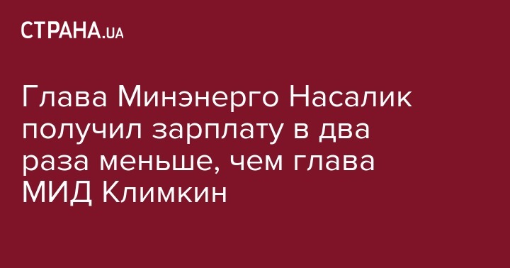 Глава Минэнерго Насалик получил зарплату в два раза меньше, чем глава МИД Климкин