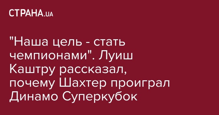 "Наша цель - стать чемпионами". Луиш Каштру рассказал, почему Шахтер проиграл Динамо Суперкубок
