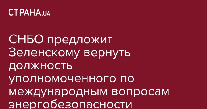 СНБО предложит Зеленскому вернуть должность уполномоченного по международным вопросам энергобезопасности