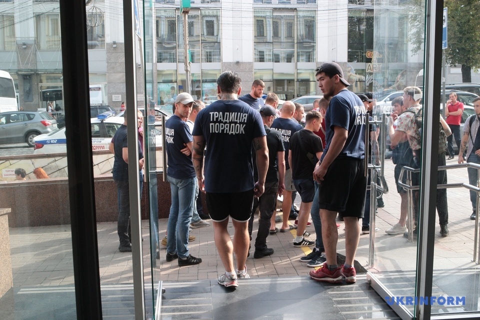 Появились фото с погрома Укринформа неизвестными в футболках "Традиция и порядок"