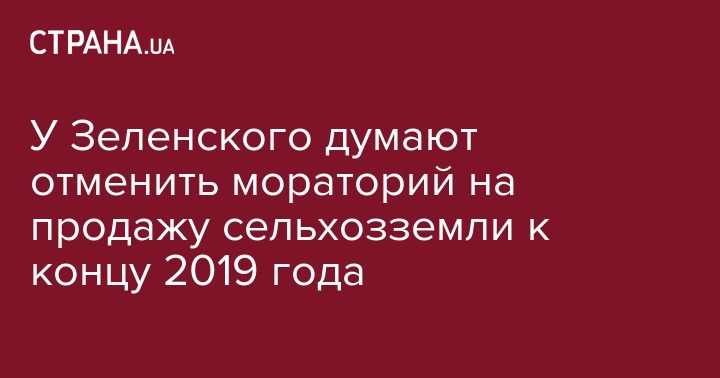 Заместитель главы Офиса президента Алексей Гончарук сообщил, что мораторий на продажу земель сельскохозяйственного назначения может быть отменен до конца 2019 года. Об этом он рассказал агентству Bloomberg.
