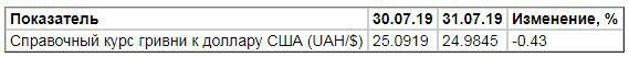 Так, по состянию на 12:00 31 июля справочный курс гривни к доллару США на межбанковском валютном рынке составляет 24,98 грн/$1.