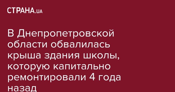 В городе Каменское Днепропетровской области бетонный карниз крыши школы № 20 упал вниз, разрушив навес и порог. Об этом сообщает 34 телеканал города Днепр.