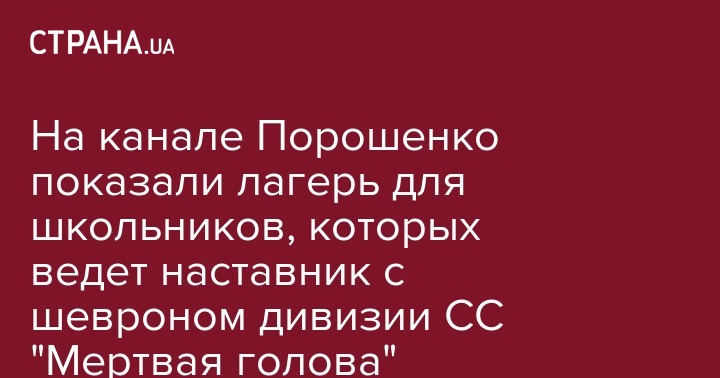 На канале Порошенко показали лагерь для школьников, которых ведет наставник с шевроном дивизии СС "Мертвая голова"