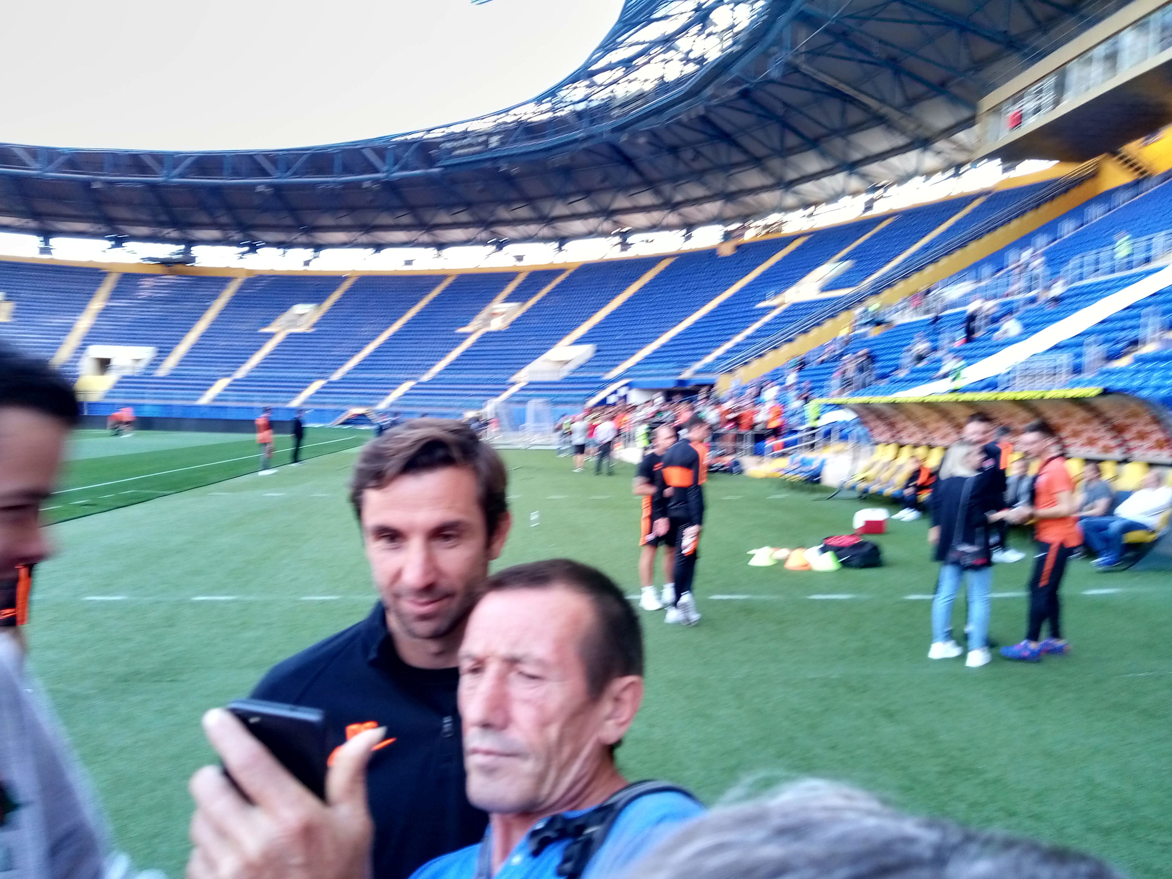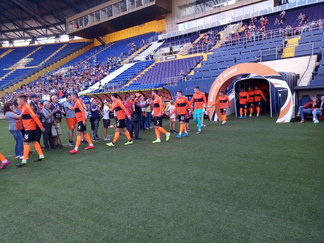 Открытая тренировка началась с выхода "горняков" из подтрибунного помещения, у которого собрались любители футбола, в минувшем сезоне посетившие все домашние встречи "Шахтёра" на ОСК "Металлист". Футболисты подходили и здоровались.