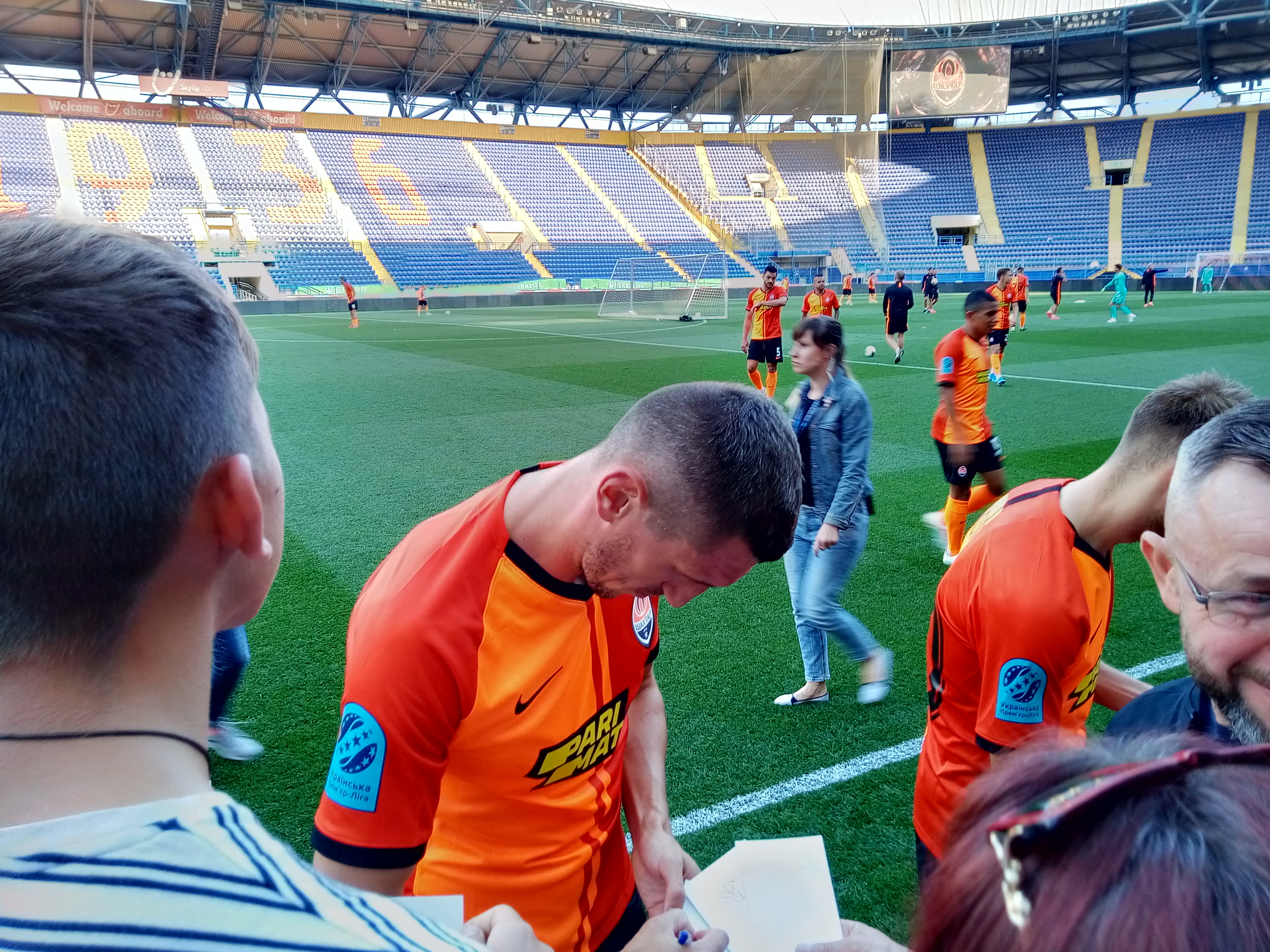 Любители футбола начали сходиться к стадиону "Металлист" к 16.30. Там, в фирменном магазине "горняков" выписывал автографы окончательно признанный легитимным Жуниор Мораес. К нашему бразильцу выстроилась солидная очередь.