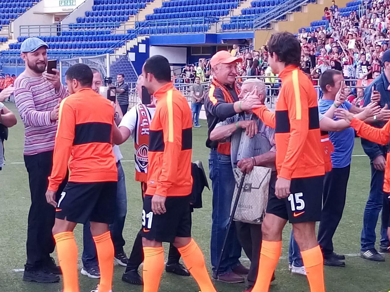 Не остались без внимания и другие гости клуба. Игроки забросили на трибуну с ними специальные футбольные мячи. Собравшимся на стадионе любителям футбола также наглядно показали новую игровую форму "горняков".
