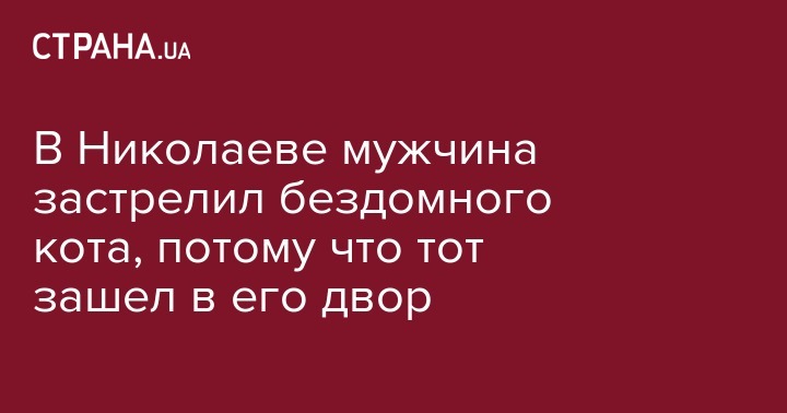 Как сказано в сообщении правоохранителей, 3 августа в Заводской отдел полиции города поступило сообщение от жителей дома по ул. Скороходова. Николаевцы пожаловались на соседа, который во дворе многоэтажки застрелил из пистолета бездомного кота. По свидетельствам очевидцев, так мужчина наказал несчастное животное за то, что оно зашло на территорию двора.