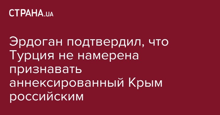 "Турция не признает незаконную аннексию Крыма и не собирается ее признавать. Наши братья, крымские татары, - часть истории, связывающей Турцию и Украину, и важный элемент связей между людьми", - заявил глава Турции.