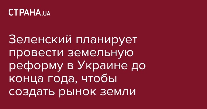 Зеленский планирует провести земельную реформу в Украине до конца года, чтобы создать рынок земли