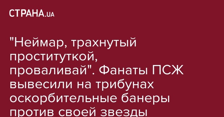 "Неймар, трахнутый проституткой, проваливай". Фанаты ПСЖ вывесили на трибунах оскорбительные банеры против своей звезды