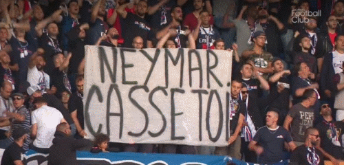 Фаны ПСЖ, которым изрядно надоели капризы звездного бразильца, развернули на трибунах плакаты с надписями: "Неймар, проваливай", и "Неймар, трахнутый проституткой, это бывает не только при ремонтаде, помнишь?".
