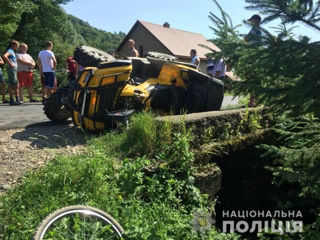 Полиция Тячевского района Закарпатской области выясняет обстоятельства ДТП с участием 12-летнего водителя квадроцикла, который вылетел на встречную полосу и столкнулся с легковушкой. Об этом сообщает отдел коммуникации полиции Закарпатской области.