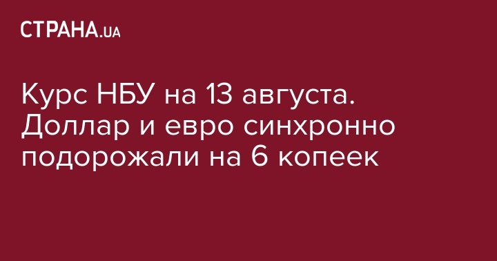 Курс НБУ на 13 августа. Доллар и евро синхронно подорожали на 6 копеек