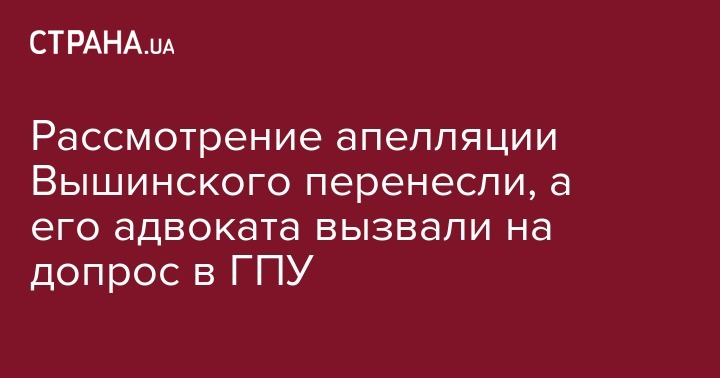 Рассмотрение апелляции Вышинского перенесли, а его адвоката вызвали на допрос в ГПУ