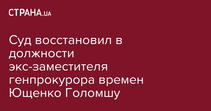 Николай Голомша решением суда был восстановлен в должности заместителя генерального прокурора. Об этом сообщает пресс-служба Окружного административного суда