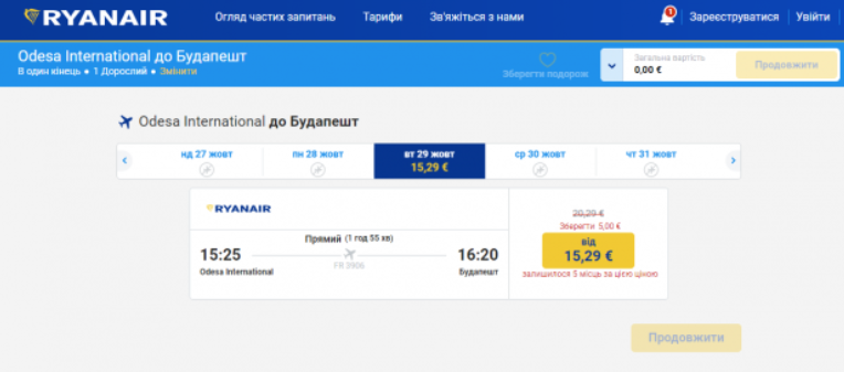Скриншот: ryanair.com/ua