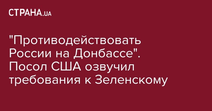 "Противодействовать России на Донбассе". Посол США озвучил требования к Зеленскому