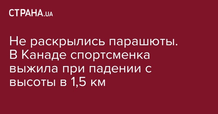 В канадском Квебеке произошло воздушное ЧП, которое могло закончиться трагедией. Здесь у спортсменки не раскрылись главный и запасной парашюты, когда она совершала прыжок с высоты более 1,5 км. Она упала в лесистую местность, после чего была госпитализирована в больницу с несколькими переломами, включая перелом позвонков. Об этом передает УНН.